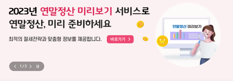 2023년 연말정산 미리보기 서비스로 연말정산 미리 준비할 수 있습니다